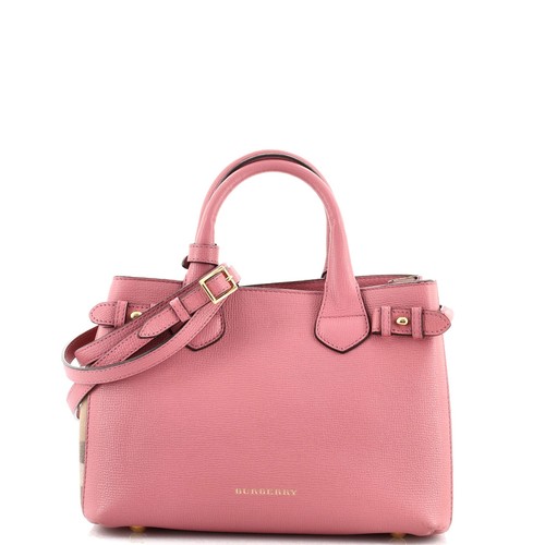 Burberry Banner Tote Leather And House Check Canvas Small Brown Pink Ebay